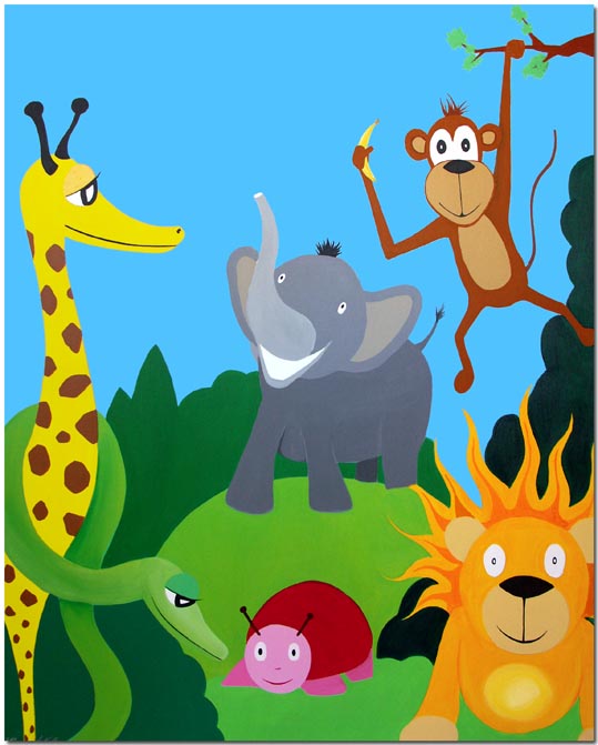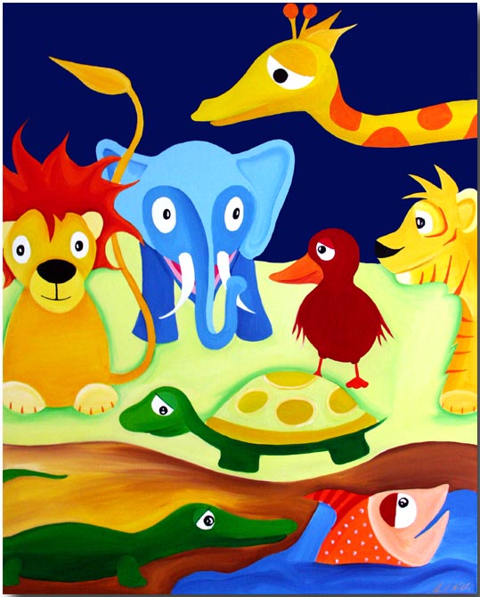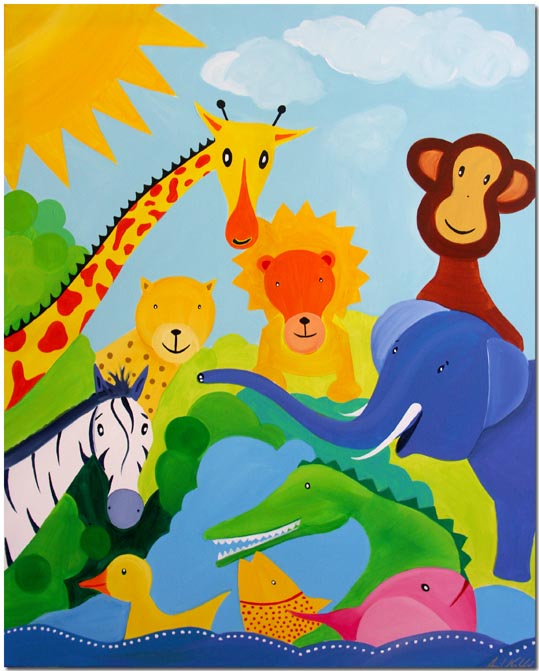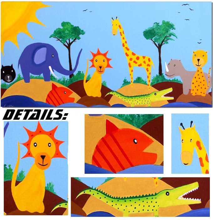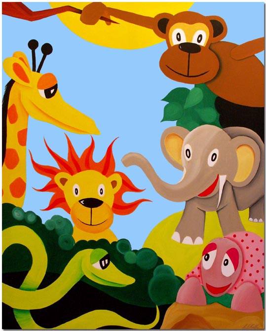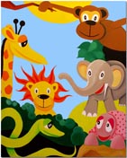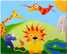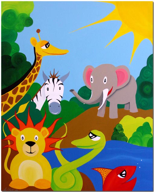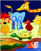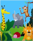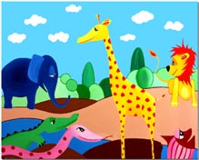 (Löwe, Giraffe, Zebra, Elefant, Schlange und Fisch)
