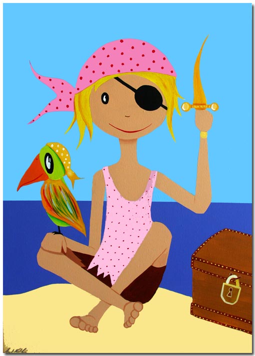 (Pirat mit Schatztruhe u. Papagei)