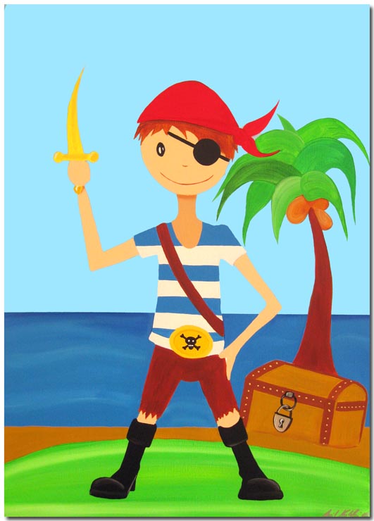 (Pirat mit Schatztruhe u. Palme)